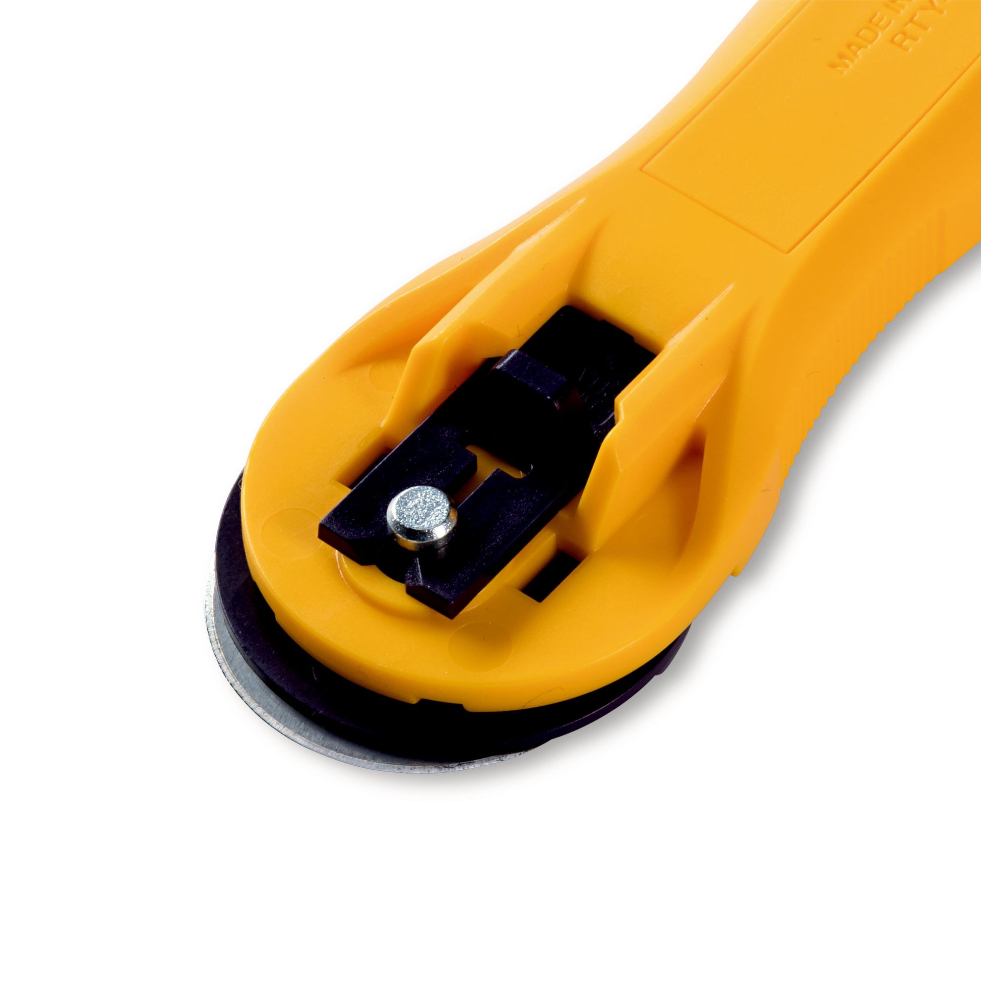 The Mini rotary cutter from Prym is a specially handy sewing aid. Its small blade with 28 mm diameter makes it ideal for curves and short distances. The rotary cutter is absolutely ideal for thin, soft materials. The locking blade guard makes cutting fabric with the OLFA rotary cutter particularly safe and reliable. For use on a cutting mat, this rotary cutter is practical for accurate needlework, and should be in every sewing box.